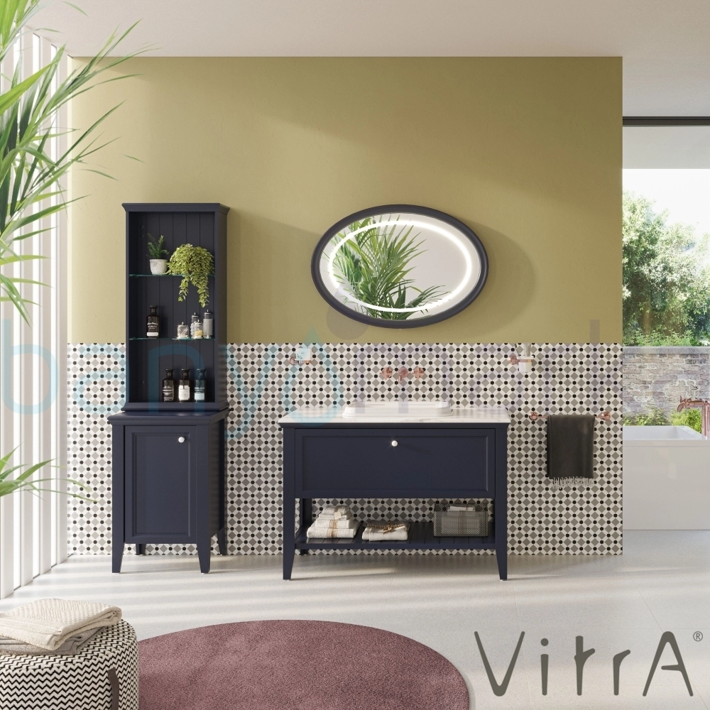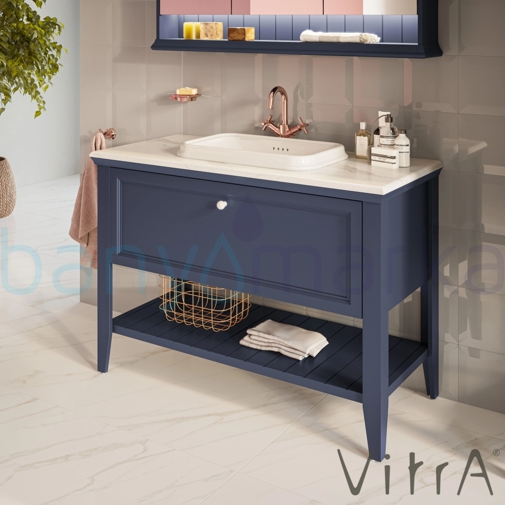 Vitra Valarte Neo Tek Çekmeceli Tezgah Üstü Lavabo Dolabı, 120 cm, Çelik Mavisi (Mermer Tezgah ve Lavabo dahil)