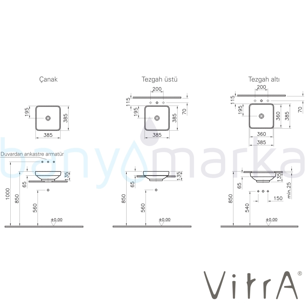 Genişlik: 40 cm Tezgahüstü Kullanım: Uygun Ayaklı Kullanım: Kullanıma uygun değil Armatür Deliği: Armatür deliksiz Su Taşma Deliği: Yok Montaj Tipi: Tezgah üstü Yetkili Servis Hizmeti: Var Ücretsiz Montaj: Yok Garanti Süresi: 10 yıl Üretim Yeri: Türkiye Uyarı ve Genel Açıklamalar: A4514823 kodlu süzgecin sipariş edilmesi gerekmektedir. A45123 kodlu sifonun sipariş edilmesi önerilmektedir. Tezgah altı montaj için 310278YP1TE kodlu montaj aparatı ayrıca sipariş edilmelidir. Süzgeç ve sifon dahil değildir. Ölçüler: 385x385 mm. Garanti Bilgisi:10 Yıl Vitra garantisi -
