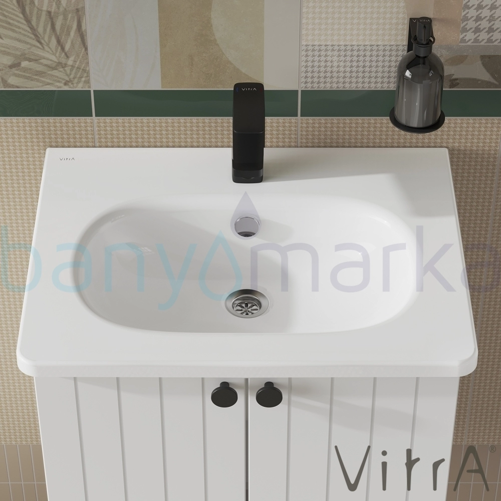 Vitra Zentrum Orta Armatür Delikli Etajerli Lavabo, 60x46 cm